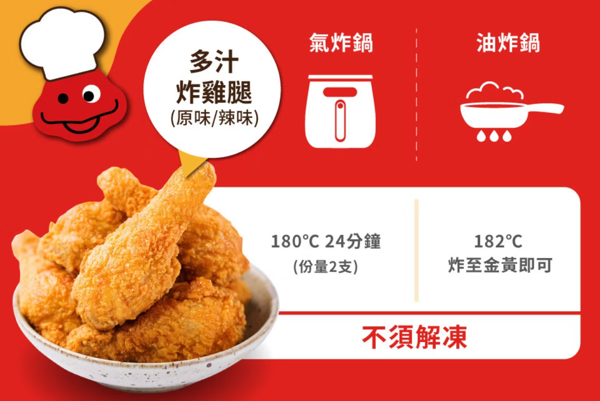 規格:1公斤(10隻/包) 紅龍特製原味棒腿,外脆內嫩,滿滿的雞肉多汁飽滿,每一口都是美味的享受! 經過精選雞腿肉,裹上特製調味粉,炸至金黃酥脆,香氣四溢 ◊ 外皮酥脆,內裡多汁,採用獨特炸粉與黃金油溫控制,讓雞腿外皮酥脆,內部仍保有肉汁,吃起來香脆不油膩 ◊ 厚實飽滿,口感紮實,選用大塊雞腿,肉質鮮嫩有嚼勁 ◊ 醃製入味,香氣十足 ◊ 黃金比例炸製,不卡油不膩口