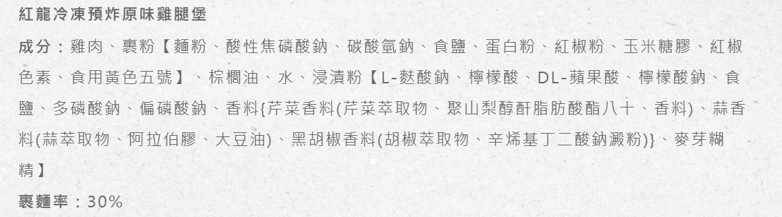 紅龍雞腿堡 規格:1公斤(10片/包)